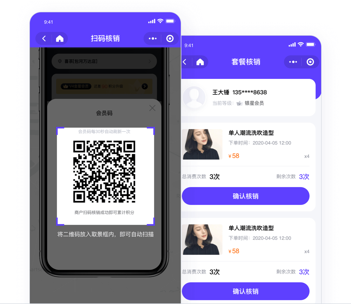核销数量:可根据用户会员消费数量核销套餐次数。