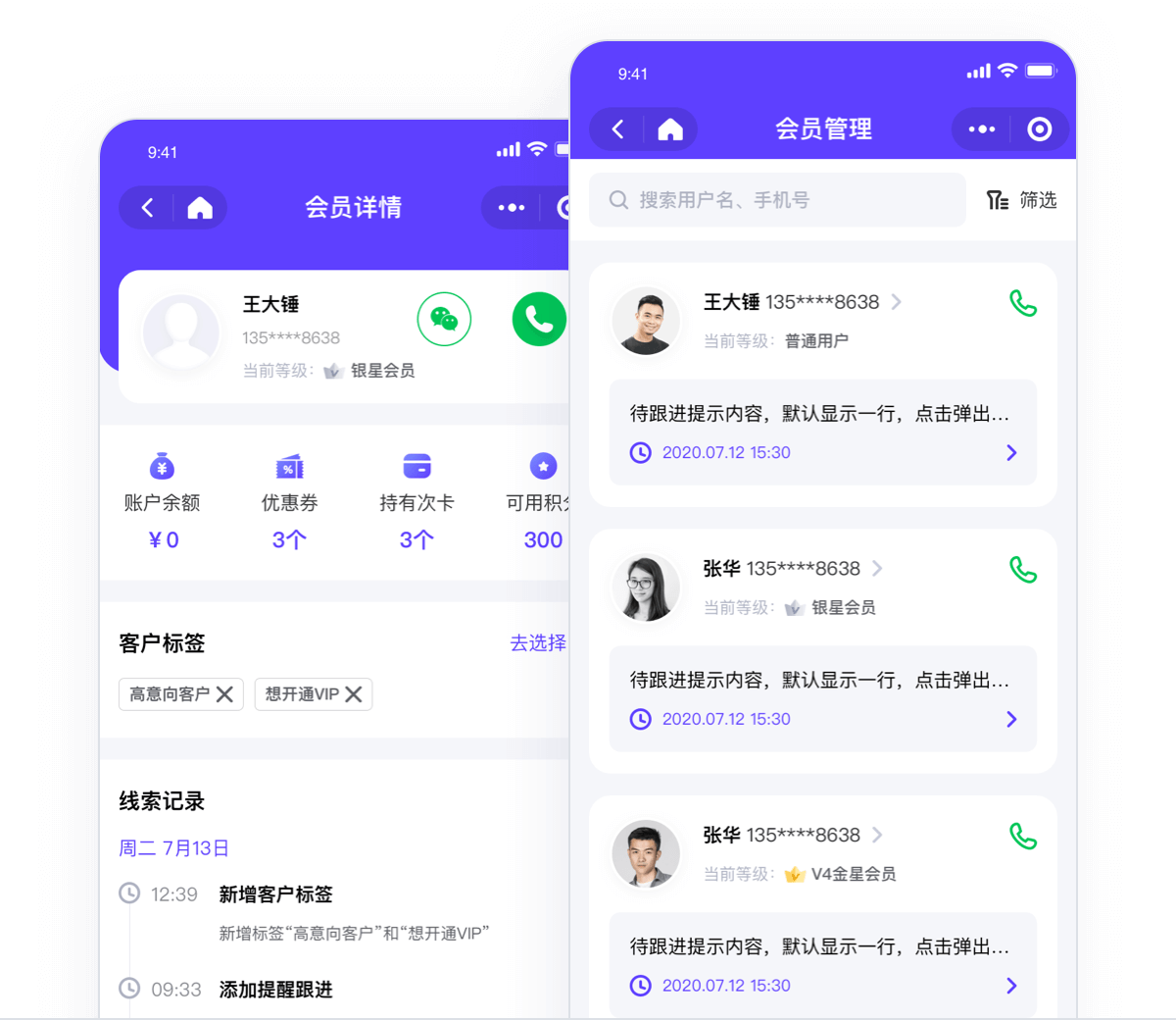 店长可在小程序端查看本店会员和相关跟进内容