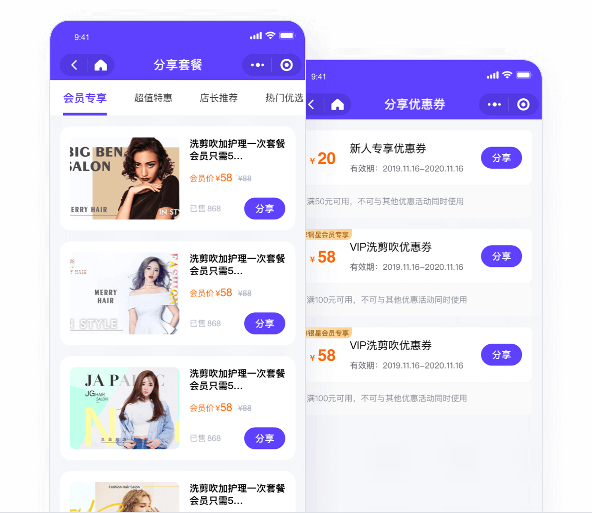 可分享套餐、优惠券至微信好友